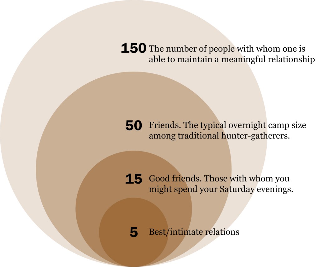But how do we create contexts where deep social connection is able to flourish? The contemporary model of social interaction is formed through Social Media. In digital space, we are not only expected to keep engaged in hundreds of different peoples’ lives every day, we are bombarded with information to such an extent that maintaining close, meaningful relationships becomes harder. According to anthropologist Robin Dunbar, we all have a finite cognitive limit of meaningful relationships we can maintain and process, which has popularly become called “Dunbar’s Number”. He suggests this limit to be 150 people, broken down into different scales of closeness. If one wants to have quality relationships, perhaps there is a need to look beyond the white noise of digital media, and focus on forming quality space in physical proximity. But, as we are lonelier than ever and living in bigger cities than ever, if there isn’t a human-scale connection between the self and the outside, how can we ever imagine such a quality environment?