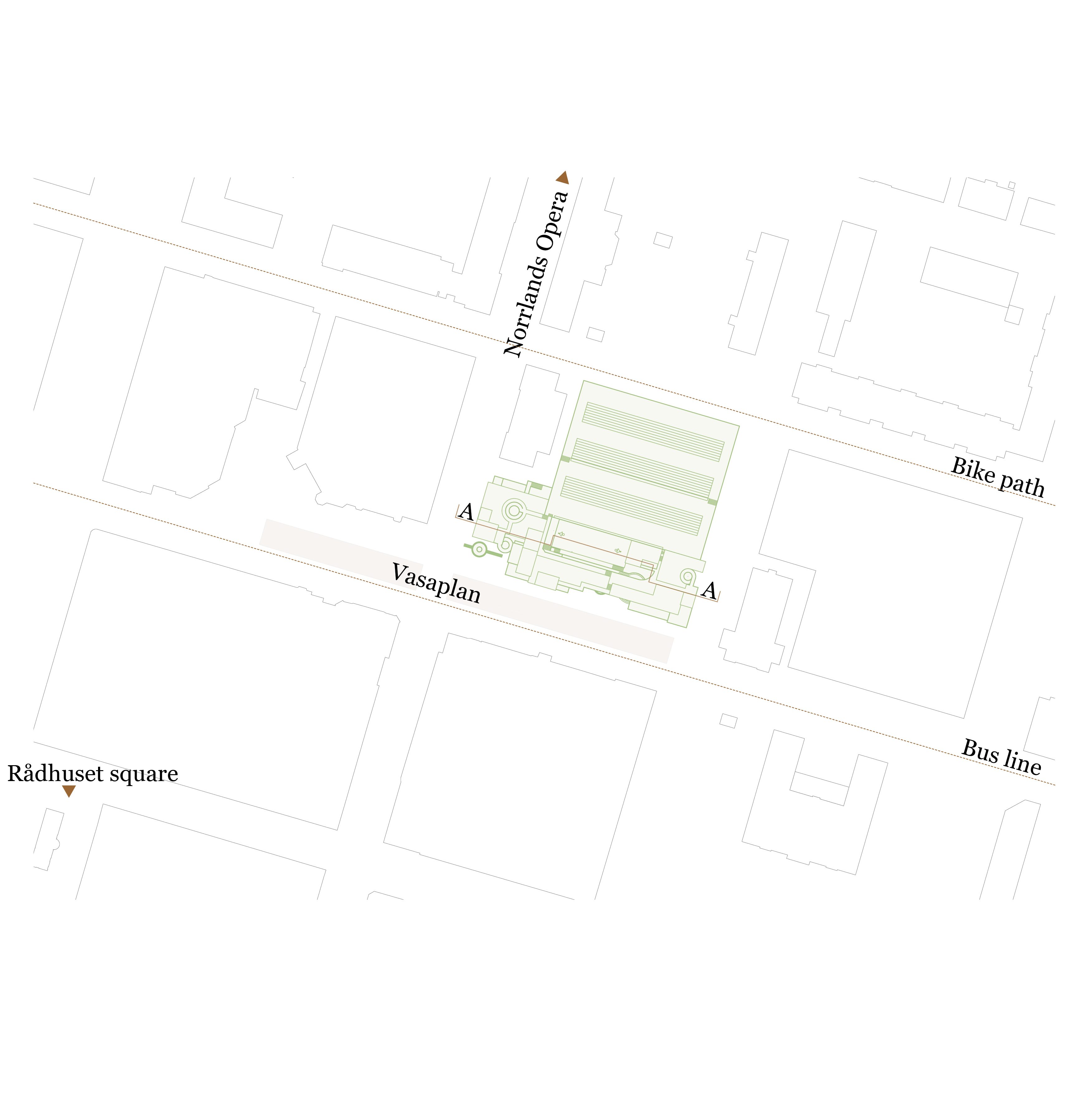 The design has been based on the sites conditions. It is a linear plot in the center of town with a strong connection to the Vasaplan bus-station. The site connects to the center in the west and to a bicycle path in the east.